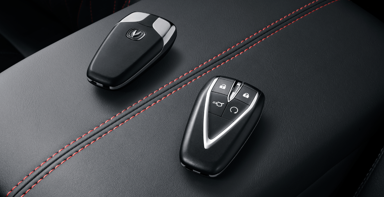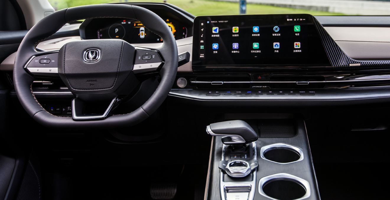 El diseño interior, cuenta con una atmósfera tecnológica, con grandes pantallas en el centro del tablero, una palanca que simula el mando de un avión, volante deportivo con diseño en "D" y múltiples asistencias para una conducción autónoma de otro nivel.